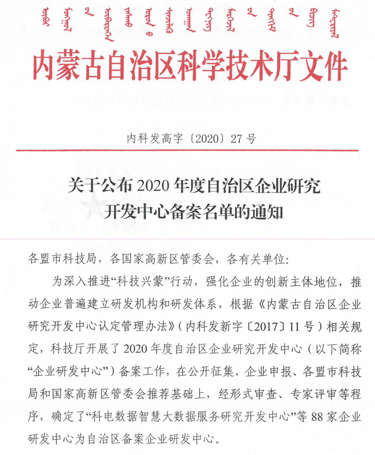 近日,内蒙古自治区科学技术厅发布《关于公布2020年度自治区企业研究开发中心备案名单的通知》,认定“金河环保园区废水集中治理与资源化利用研究开发中心”为自治区企业研发中心。